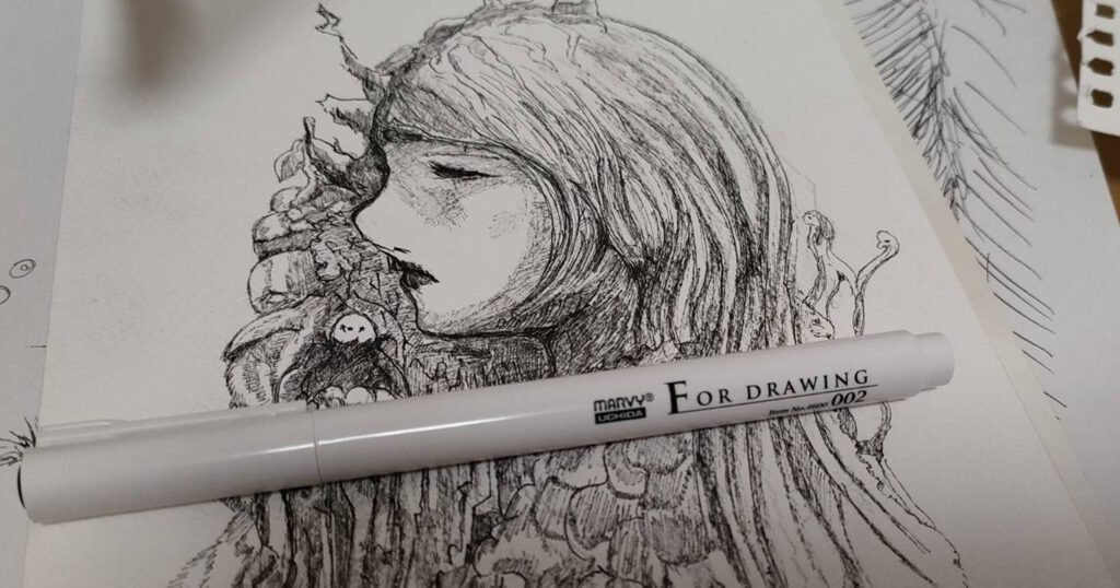 細い線画を書きたくてマービーのドローイング0.02mmペン買ってみた。